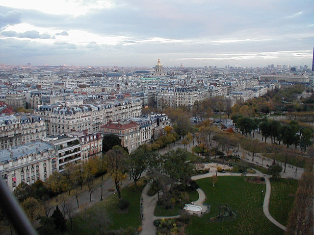 Edge of the Champs du Mars ("our park") with the gold dome of Les Invalides and the |