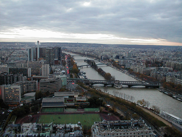 Downstream toward Allee de Cygnes. (There's a smaller scale Satute of Liberty at the end of it.) |