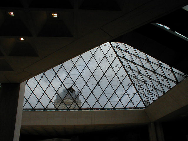 Looking up out of the Pei pyramid at the Louvre |