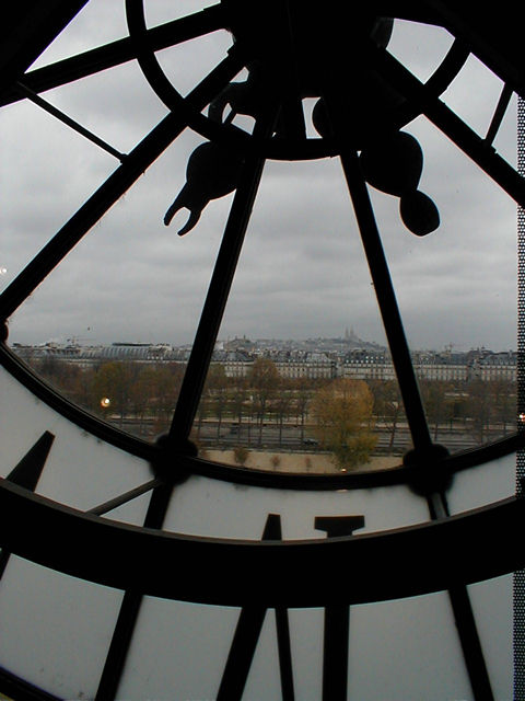 Paris, and Sacre Couer, through one of the station's clocks. |