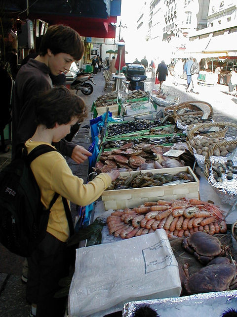 Examining the selection at the fish mongers in Rue Cler |