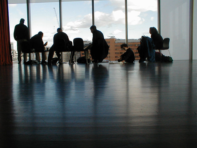 Monica and Maggie drawing the Globe reproduction from the top of Tate Modern |