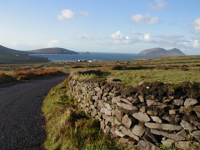 Dunmore Head and Great Blasket with stone wall |