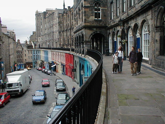 Edinburgh's cool Victoria Terrace street. One morning, we all went for a fantastic run down this street, across the University of Edinburgh campus, and through a couple ancient graveyards. |